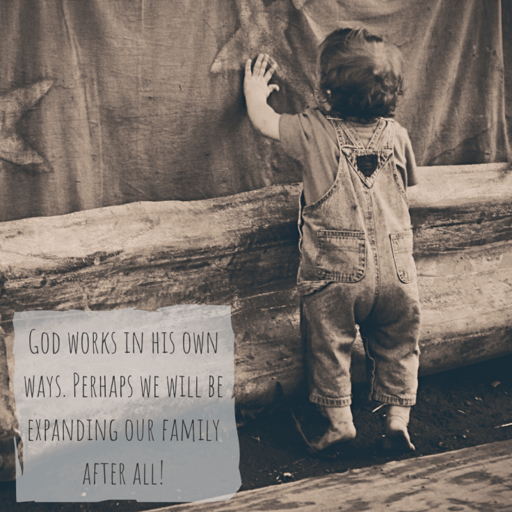 I thought the door had been closed on our adopting. It caught me off guard that we would have another door open for a possible adoption.